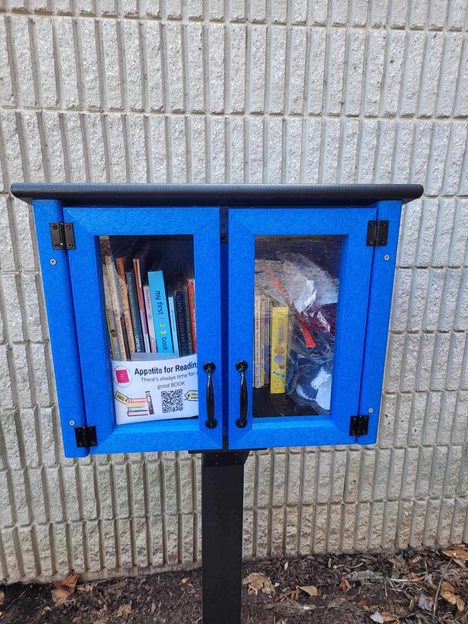 Beyond the pages of engaging stories and enlightening knowledge, this shelf also extends warmth during chilly days, offering hats and gloves to children in need. Positioned to serve families using the shelter and local residents, the bookshelf is a beacon of generosity and educational opportunity in the heart of the neighborhood.